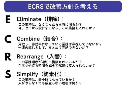 業務改善の検討では、次の4つの視点で業務を見直します。